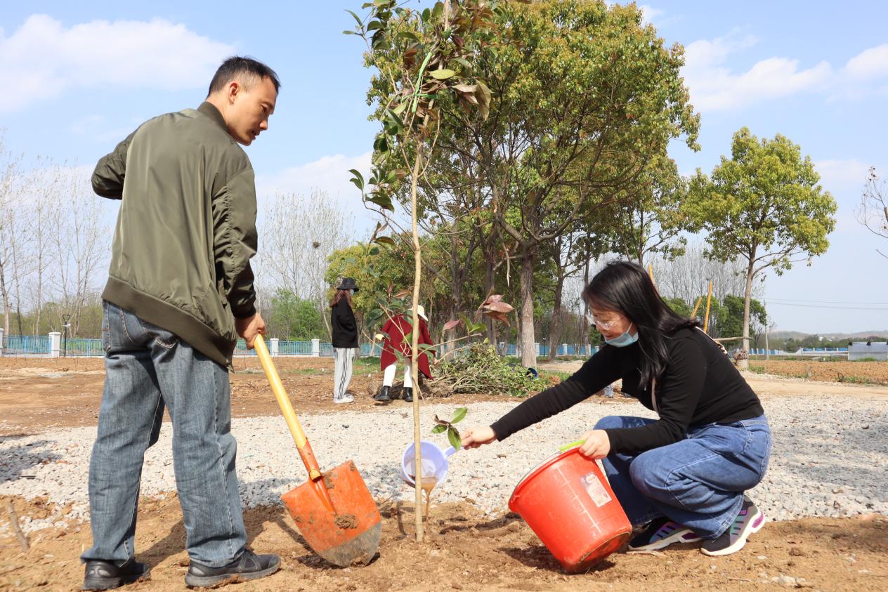 活动现场,大家穿上鞋套、拿起铁锹、扛起树苗、甩开膀子,在指定区域开始植树。松土、挖坑、扶苗、培土、浇水……大家个个干劲十足,或两人一组,或三人一群,分工明确,配合默契。通过辛勤劳动,一株株新栽种的树苗错落有致、迎风挺立,萌发出无限的生机和希望,为初春的大地增添了一抹盎然的绿意。