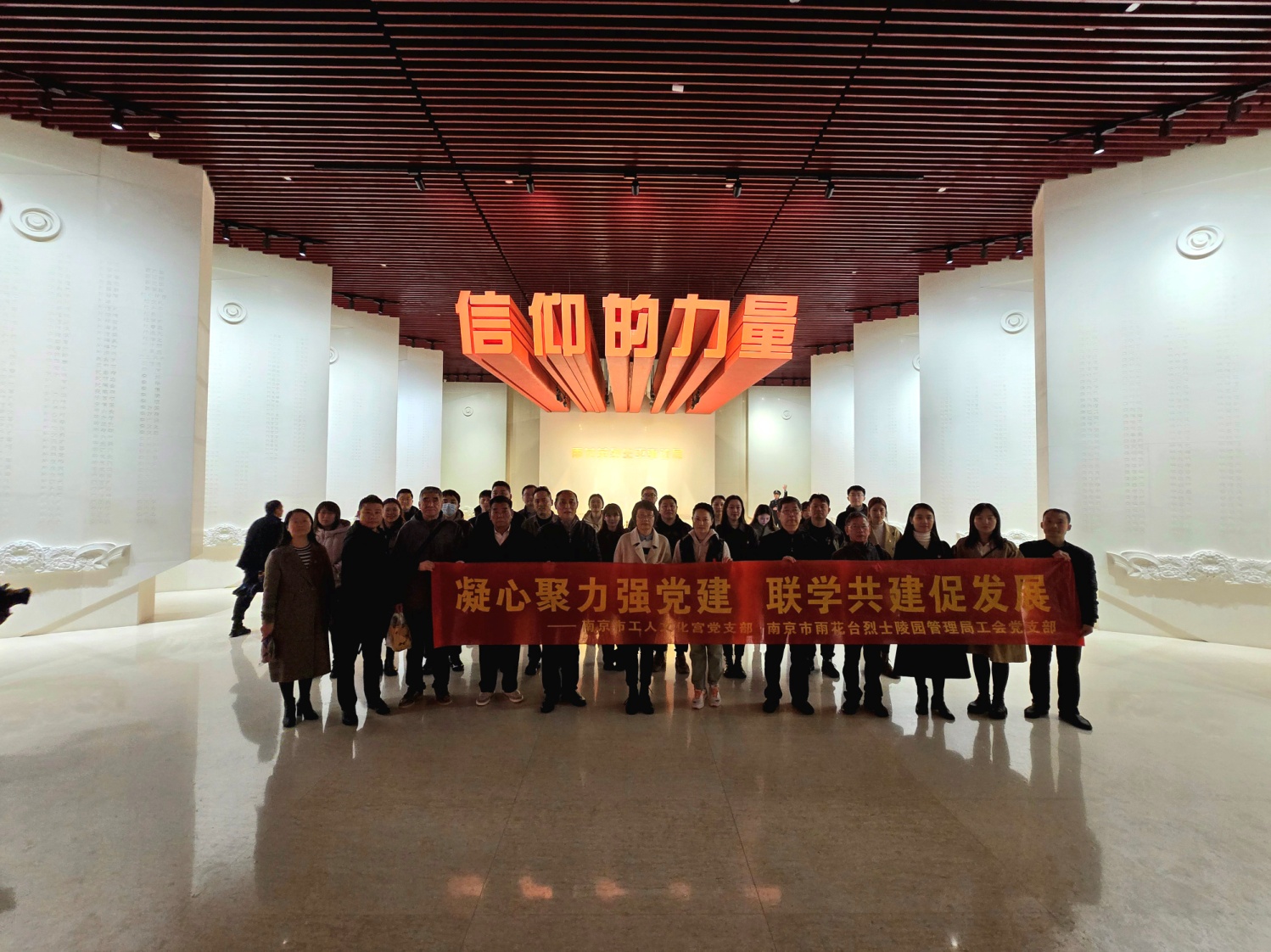 3月27日下午,南京市工人文化宫党支部和雨花台烈士陵园管理局工会党支部联合开展“凝心聚力强党建 联学共建促发展”主题党日活动,组织文化宫在职党员、部分离退休党员、入党积极分子和团员了解身边红色历史,感受革命先烈事迹,赓续红色血脉,从而进一步深化推进党建品牌建设,巩固和拓展主题教育成果,推动主题教育持续走深走实。