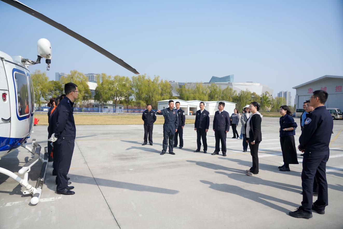 活动首站抵达警航基地,党员们近距离参观了警用直升机性能展示,深入了解其在应急救援、空中巡逻等任务中的实战效能。