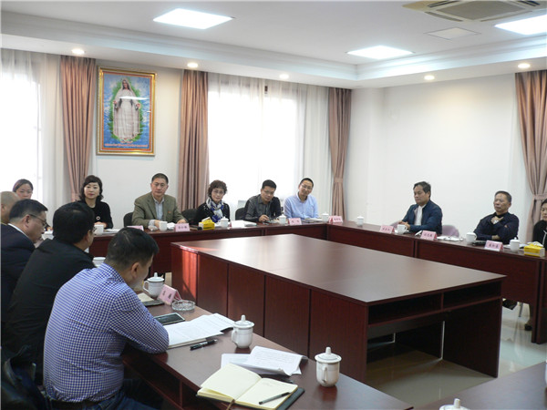 监督组一行到天主教石鼓路堂听取了天主教爱国会副主任高源神甫关于南京天主教爱国会堂点的工作介绍和基督教两会会长李兰成牧师关于推进基督教中国化和“四进”情况的工作汇报。