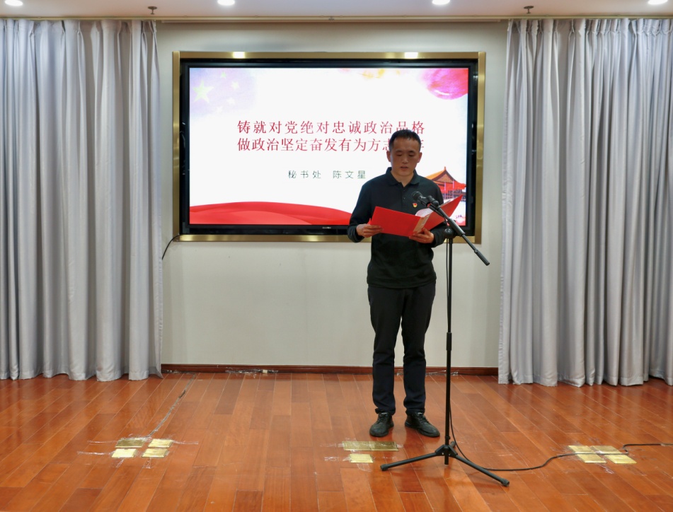 陈文星同志以“铸就对党绝对忠诚政治品格 做政治坚定奋发有为方志青年”为题,表达了对党无限忠诚和热爱,力争怀抱梦想又脚踏实地,敢想敢为又善作善成,做有理想、敢担当、能吃苦、肯奋斗的新时代好青年。