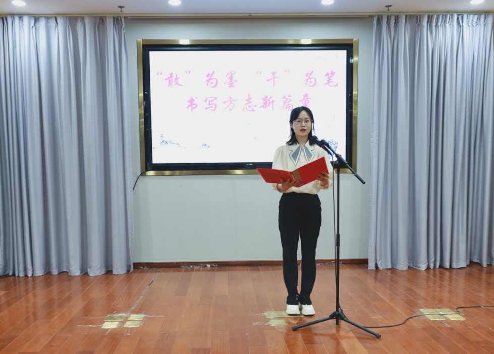 石高兵同志以“扬‘四敢’精神 做‘敢拼善为’方志人”为题,畅谈学习体会,表示我们青年人生逢其时,当以党的二十大精神为指引,深入学习贯彻“四敢”精神,做敢拼善为的新时代方志好青年。