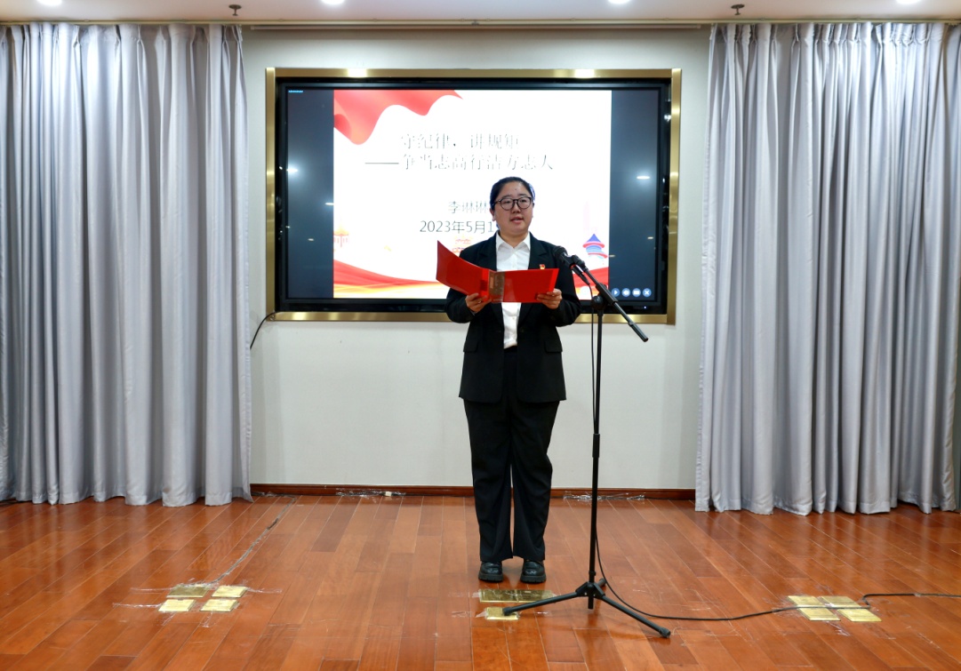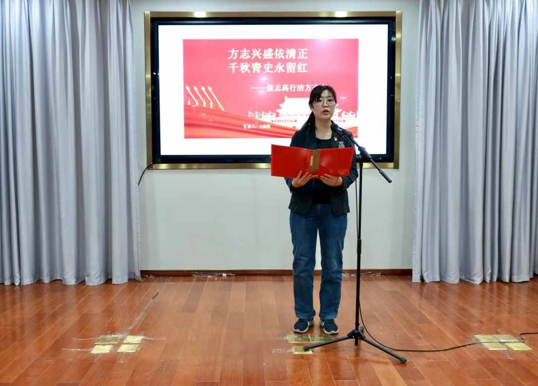 李琳琳同志以“守纪律,讲规矩——争当志高行洁方志人”为题,表示唯有牢固树立纪律和规矩意识,坚定不移廉洁奉公,才能踏踏实实地做政治上的明白人,做干事创业的奋斗人,做志高行洁的方志人。
