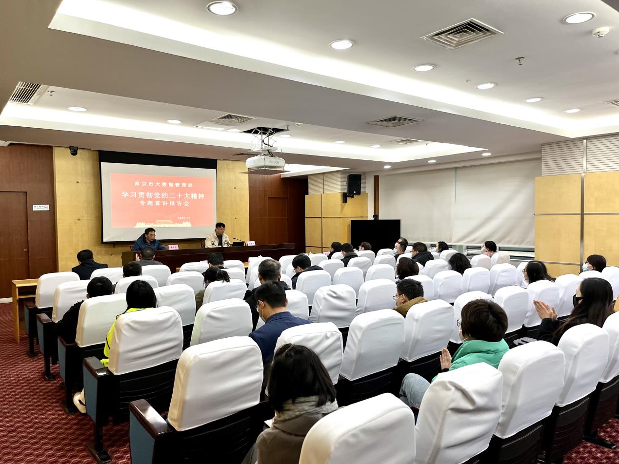 近日,南京市大数据管理局举行学习贯彻党的二十大精神专题宣讲报告会,邀请南京市委宣讲团成员、市委党校党史党建教研部主任刘玉东教授作宣讲报告。市大数据局党组书记、局长唐建荣主持会议,局机关及市城市数字治理中心全体人员参会学习。
